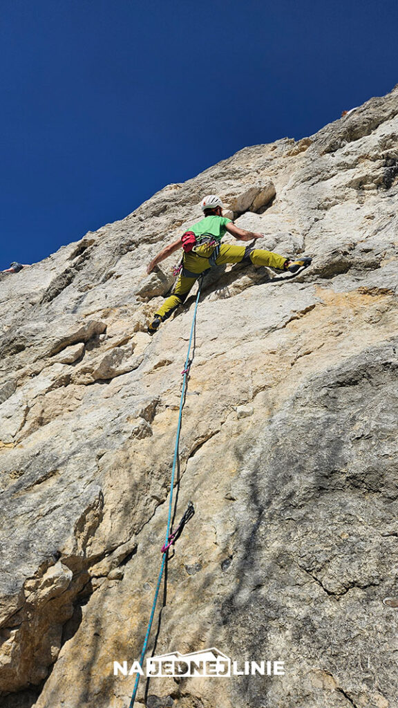 Dla mnie dodatkowym wyzwaniem były spore odległości między wpinakami, co dodaje trochę emocji. Bardzo ciekawa i angażująca droga – osobiście chyba dorzuciłbym nawet mały „+”.