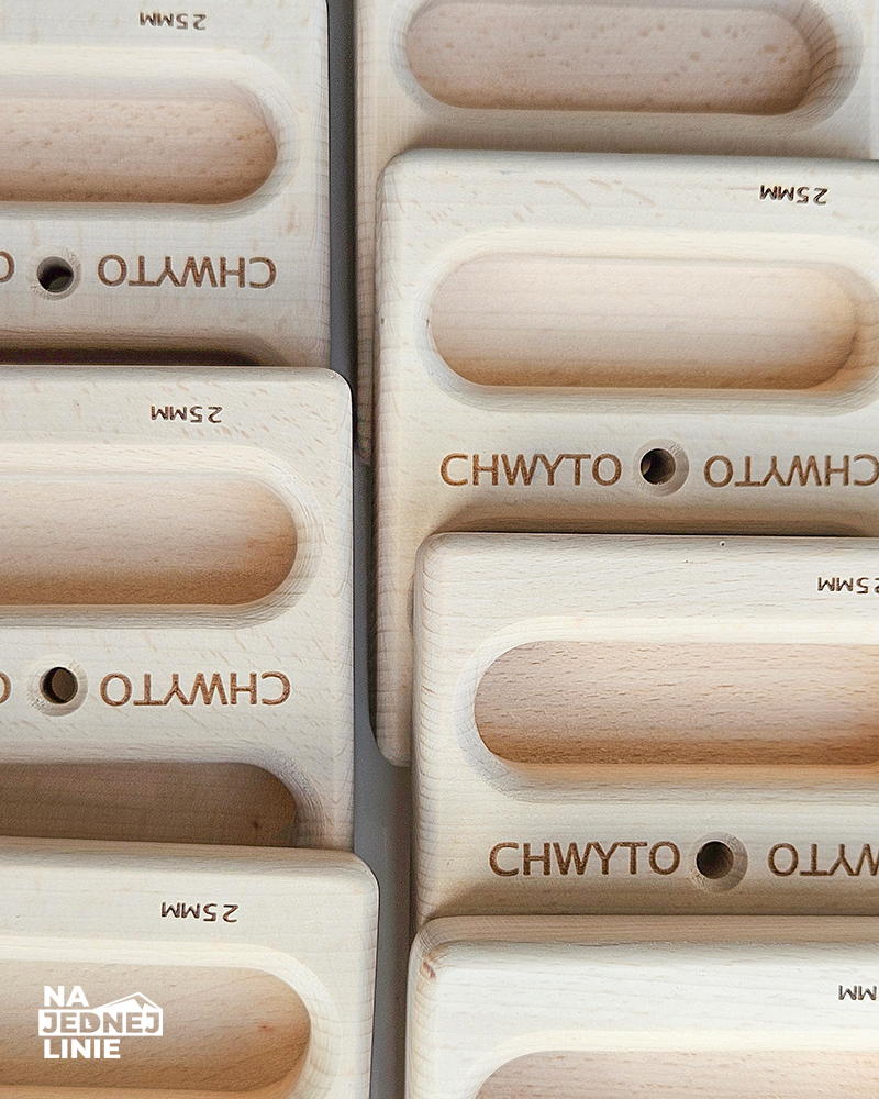 Właśnie dlatego powstała CHWYTO — zaprojektowana przeze mnie, przetestowana przez wielu zaprzyjaźnionych wspinaczy i wytwarzana w 100% w Polsce, z pięknego bukowego drewna.