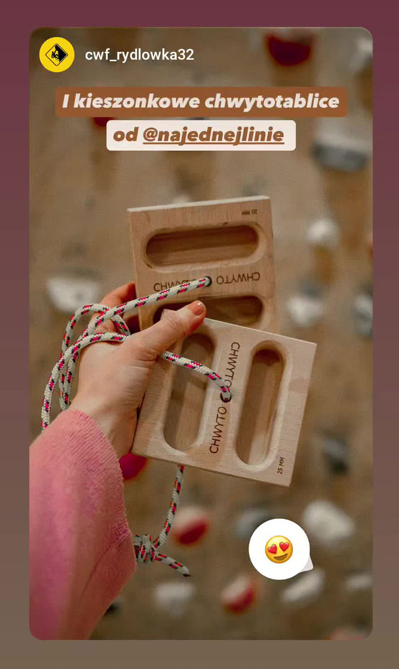 Wspinam się od wielu lat — kto śledzi profil @najednejlinie, ten doskonale o tym wie. Dlatego z pełnym przekonaniem mogę polecić zarówno sam produkt, jak i cały trening, który za nim stoi.