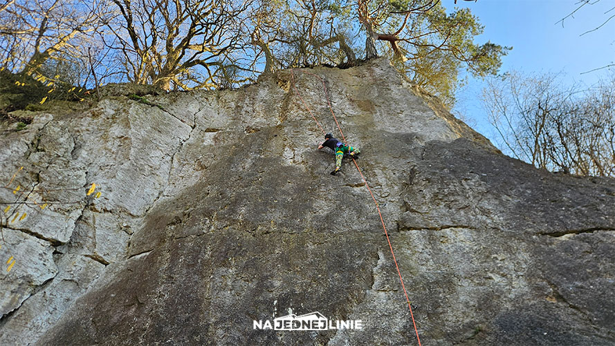 O tej porze roku było sporo wilgoci, w dolnej partii ściany dużo mchu, do tego chłód. Trzeba było trochę cierpliwości – dopiero około 14:00 słońce zaczęło dochodzić do ściany i od razu zrobiło się znacznie przyjemniej.