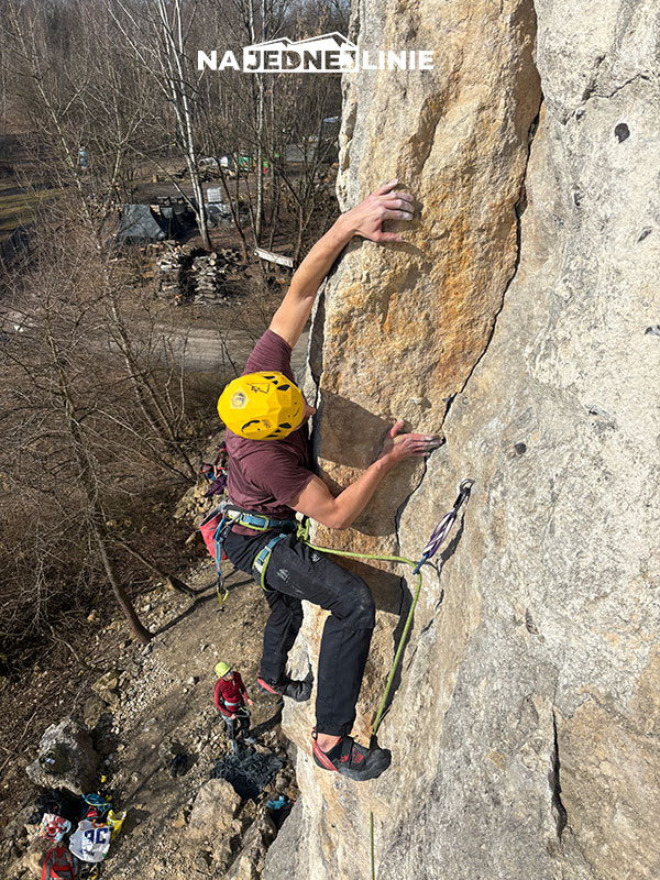 Przyjemna, logiczna linia. Idealna na pierwsze zapoznanie ze skałą i charakterem chwytów. Pozwala oswoić się z tarciem i długością drogi.