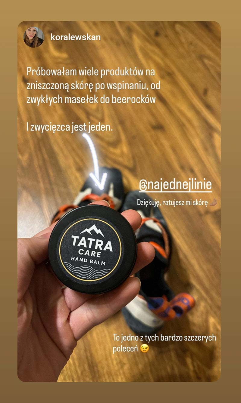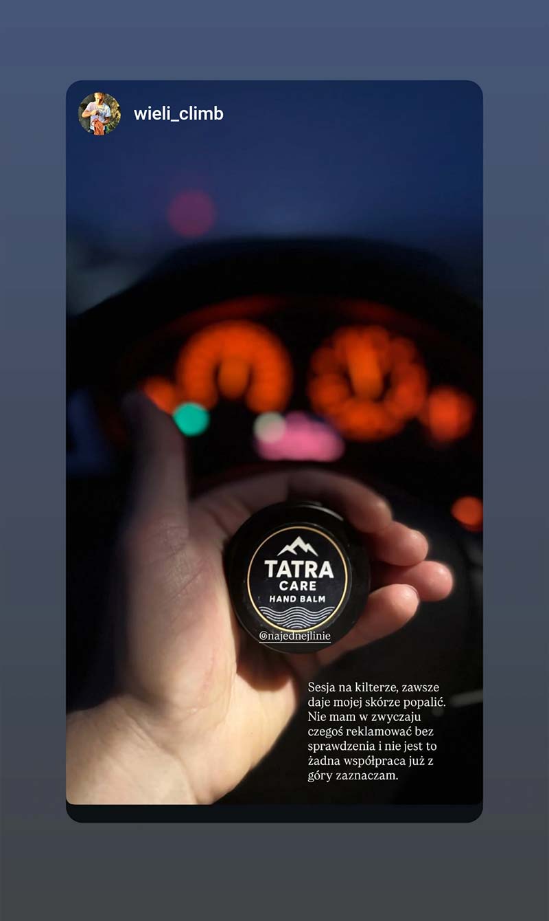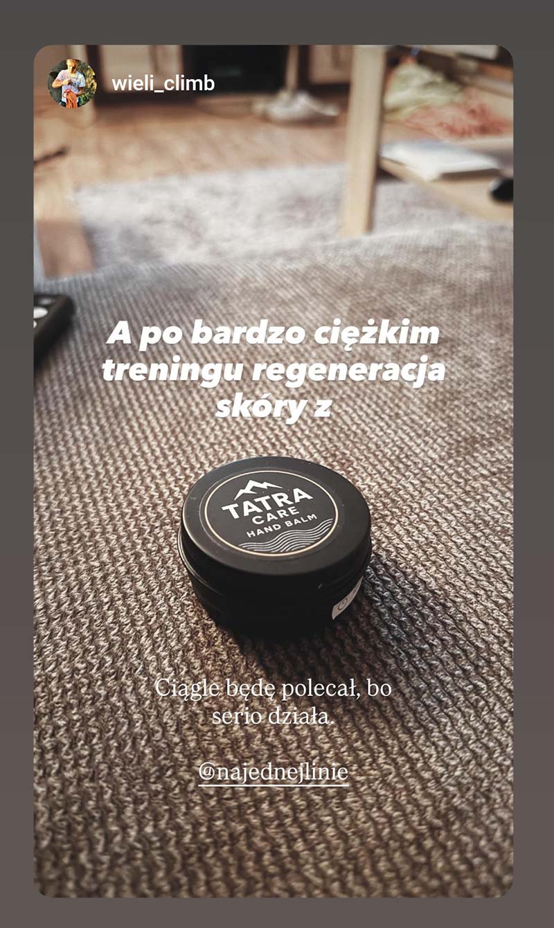Po intensywnym treningu często mam przesuszone i popękane dłonie, za sprawą magnezji, tarcia i skały. Skóra z biegiem czasu stała się twarda, zgrubiała i wymagała regeneracji. Zrozumiałem wtedy, że potrzebuję czegoś więcej niż zwykłego kremu – preparatu, który naprawdę odpowie na wyzwania, jakie stawia przed nami wspinaczka i góry.